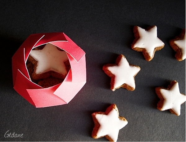 用有漂亮圖案的紙杯做成裝糖果或小禮物的盒子。